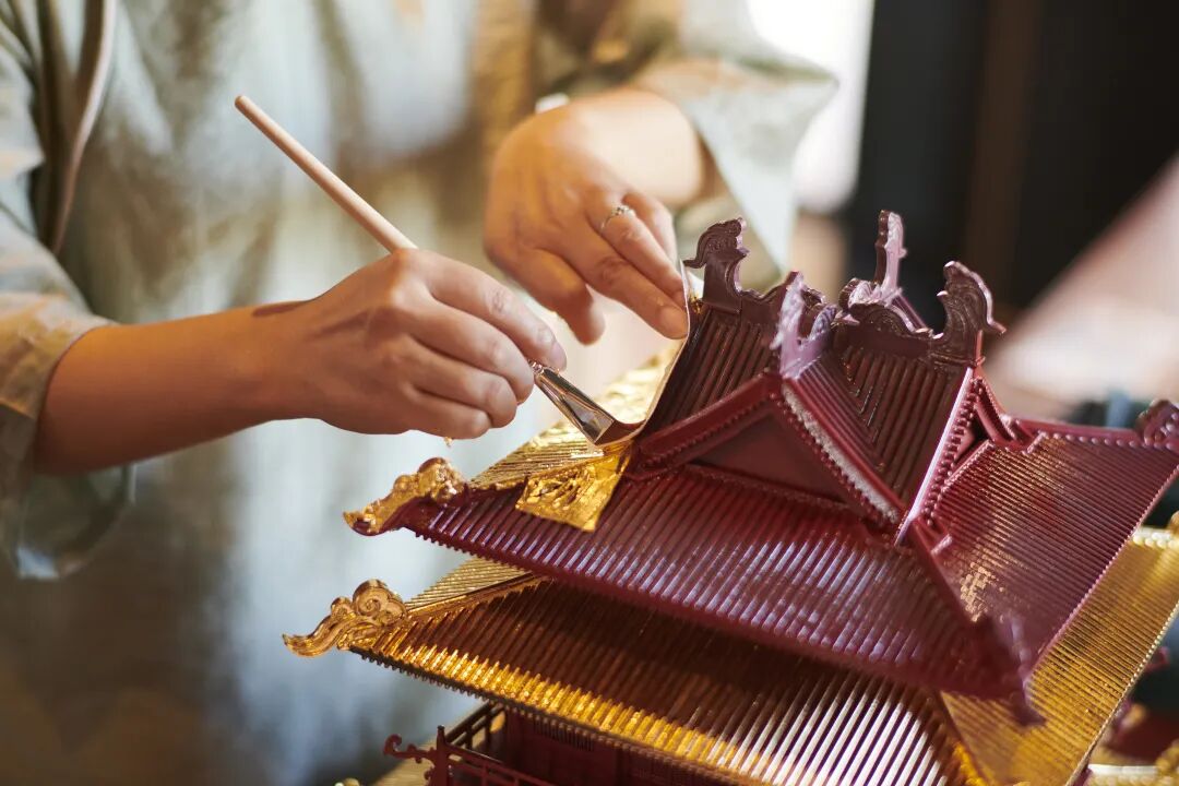 活動現場,貼金技藝傳承人孫海燕講解了歷經12道工序、2萬5千次捶打,方能鍛制而成“薄如蟬翼、柔似鍛綢、輕若鴻毛”的金箔過程后,嘉賓們紛紛下手,體驗貼金技藝的魅力,助力非遺金箔走進了更多人的日常生活。